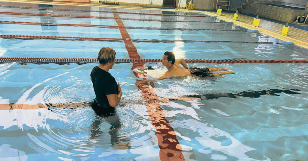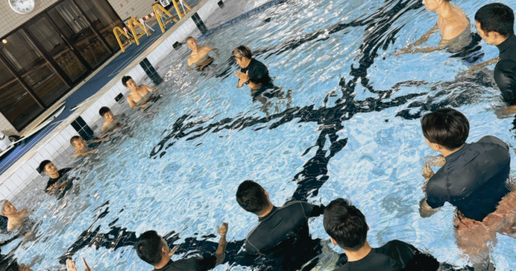 「水の抵抗を減らす」「効率的に進む」動きを、プロスイマーが解説・指導。テイクオフ本数が増えて練習のタイパもアップします。