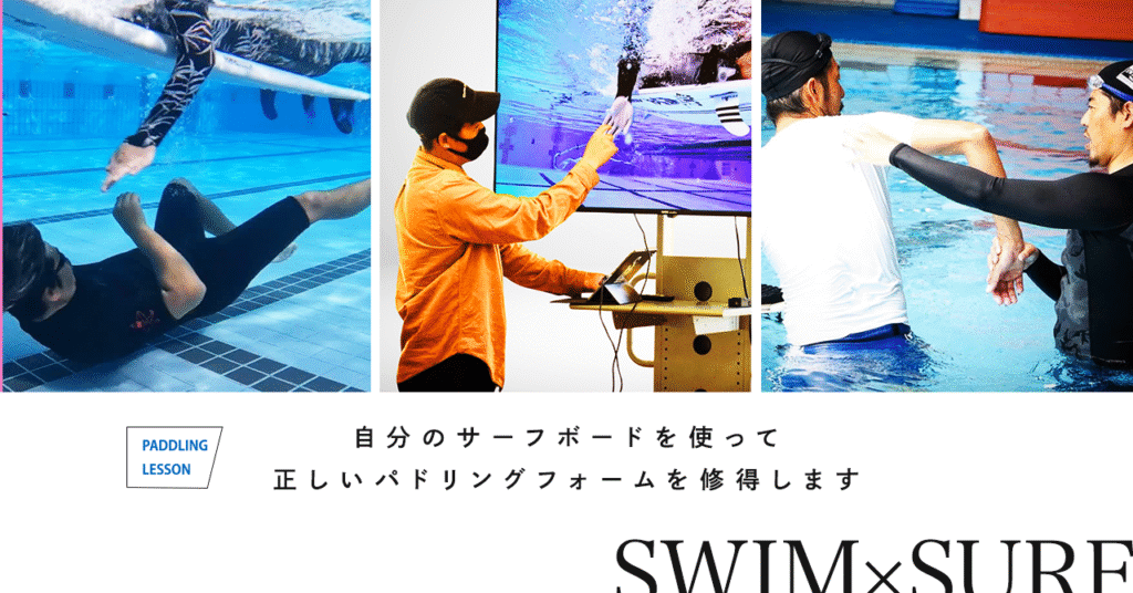 スピード測定、水感測定、水中、水上フォーム撮影全ての角度からパドリングを徹底分析。海ではできない水中動作の修正や水感を高めるトレーニングを行います。