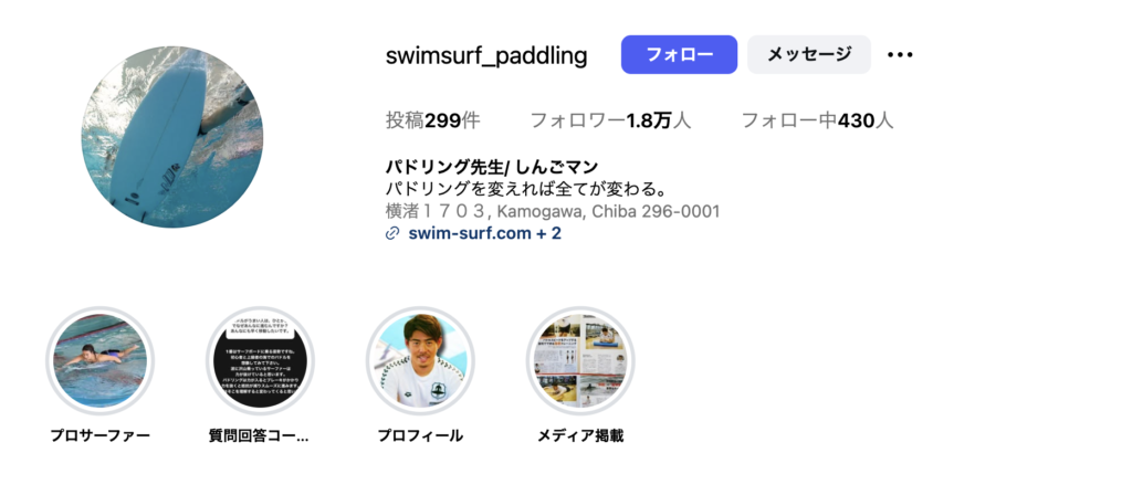 水泳競技のオープンウォーターでオリンピック強化選手として活躍していましたが、引退を機に自身の水泳ノウハウを活かした日本初となるプールでのパドリングレッスンを鴨川にて開講しSWIM×SURFを運営しています。