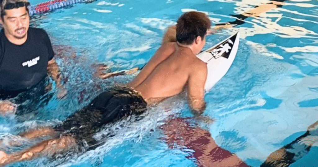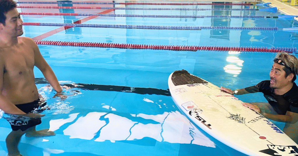 サーフィンのパドリングトレーニングを開講しています。